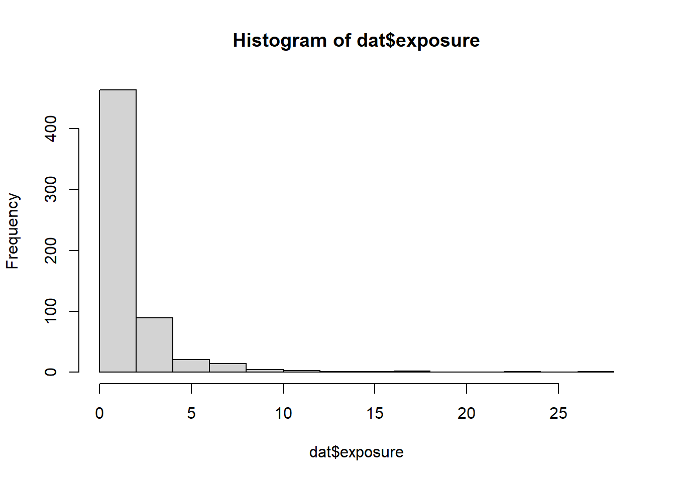 exposure <- rlnorm(N, meanlog = 0, sdlog = 1.0)